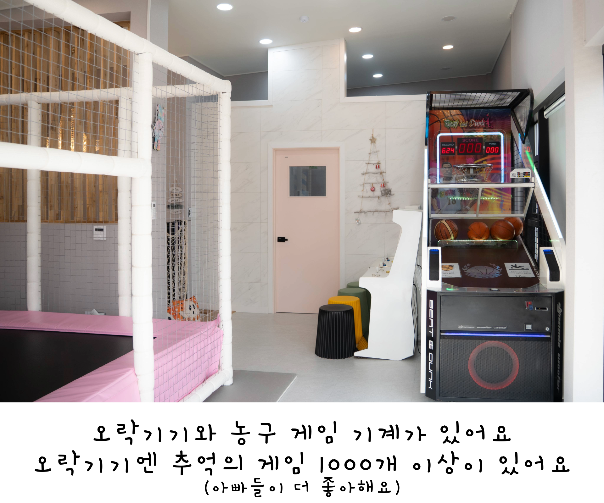 3F- 정글짐, 각종 오락기, 농구 게임기, 냉난방기, 퀸침대1, 화장실, 플레이텐트(아기침대), 오션뷰