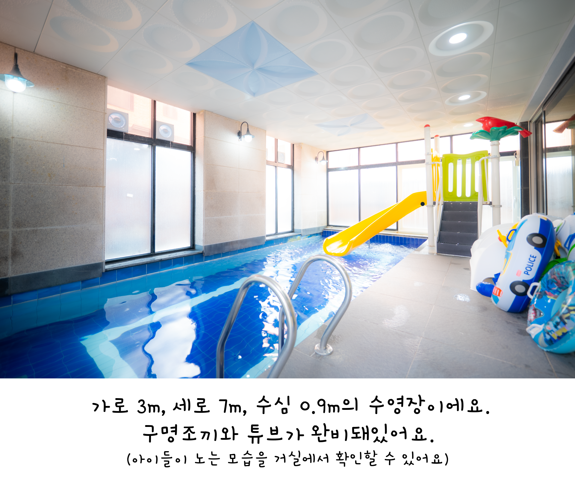 실내 수영장 - 워터 슬라이드, 구명 조끼, 각종 튜브